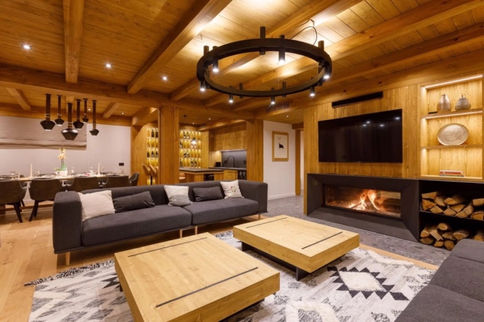 These villas, a harmonious blend of local tradition and modern elegance, provide a refined retreat. Each two-story villa spans 200 square meters, comfortably hosting up to six guests. Inside, you’ll find three spacious bedrooms, two bathrooms with premium toiletries, and a fully equipped modern kitchen perfect for culinary creations. The heart of the home is the expansive living room, where a crackling fireplace invites shared moments with loved ones. Floor-to-ceiling windows frame panoramic views of snow-capped peaks, verdant meadows, and ancient forests—scenes that evoke the charm of a timeless romance.