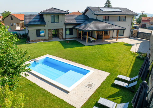 Брой бани: 7 (по една във всяка стая + 1 обща до трапезарията)