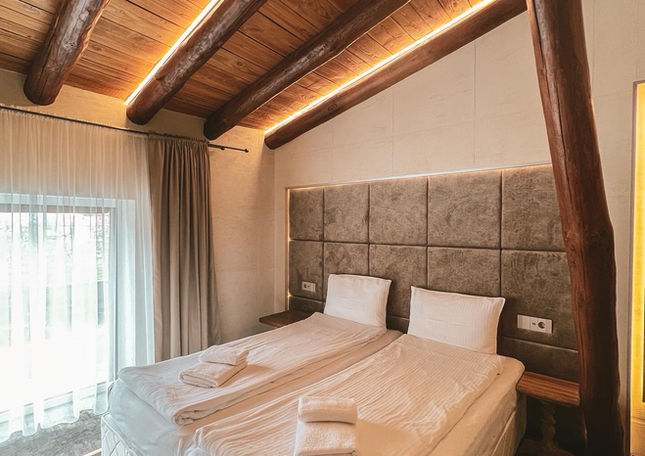 На ваше разположение ще бъдат външно джакузи и спа център. Всяка стая е обзаведена в различен стил и няма две еднакви. А от зелените покриви на всяка една къщичка ще ви посрещнат дружелюбно някои симпатични обитатели.Мястото разполага с ресторант, който ще ви изненада със своята екологично чиста храна и интересни рецепти, приготвени от самия домакин.